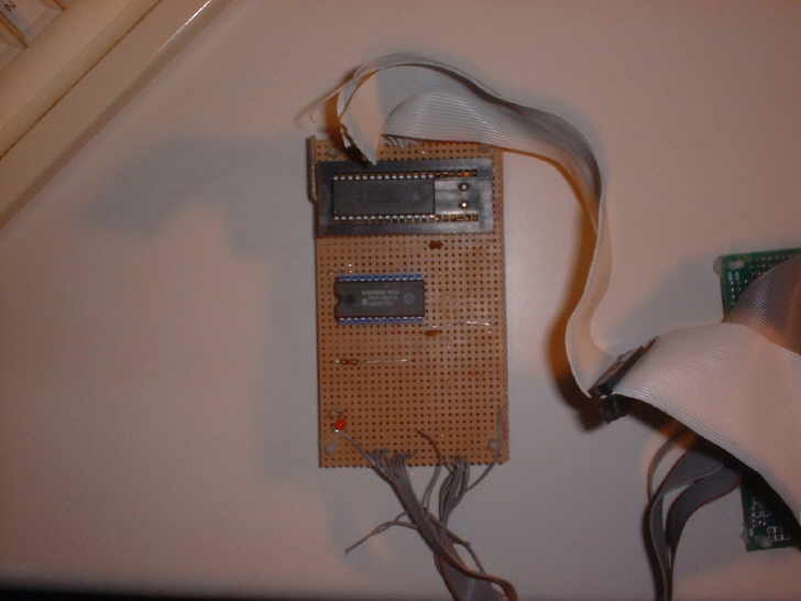 board, connected to piece of stripboard which has a 24-pin socket for 2816